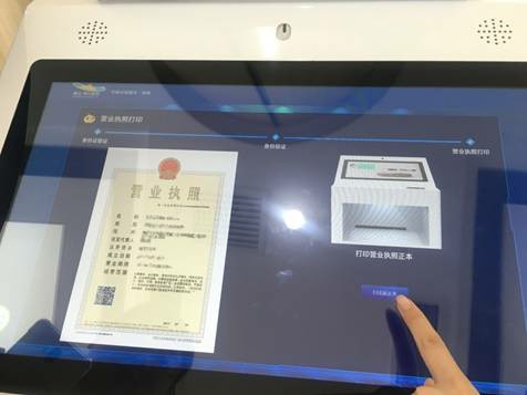 广州浩田数码科技有限公司生产的自助营业执照打印机可以进行办件查询和执照打印,自助打印一体机可与工商局对接,申请人通过刷二代身份证识别身份后即可自助打印营业执照正副本。
