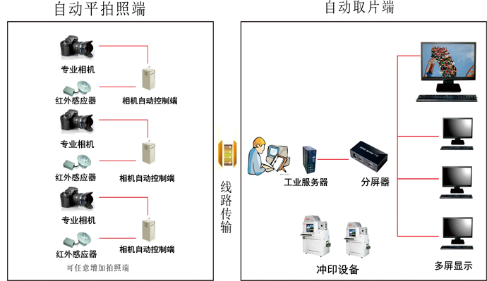 此项目主要通过公司定制开发的软件让游客经过时能领略全球各地的风光,通过无线装置对相机进行控制拍照,游客的每一张笑脸都被拍出来并可与软件里的各地风景瞬间合成,通过专业的冲印设备即时出片让游客带走,特别是一些国外的游客对此乐不疲此,给游客一张永恒的纪念!