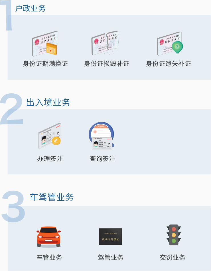 无接触方式办理车驾管业务、户政业务和出入境业务,实现"防聚散,防接触,防感染"